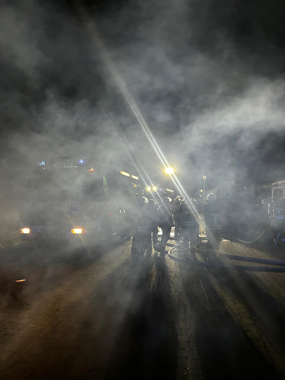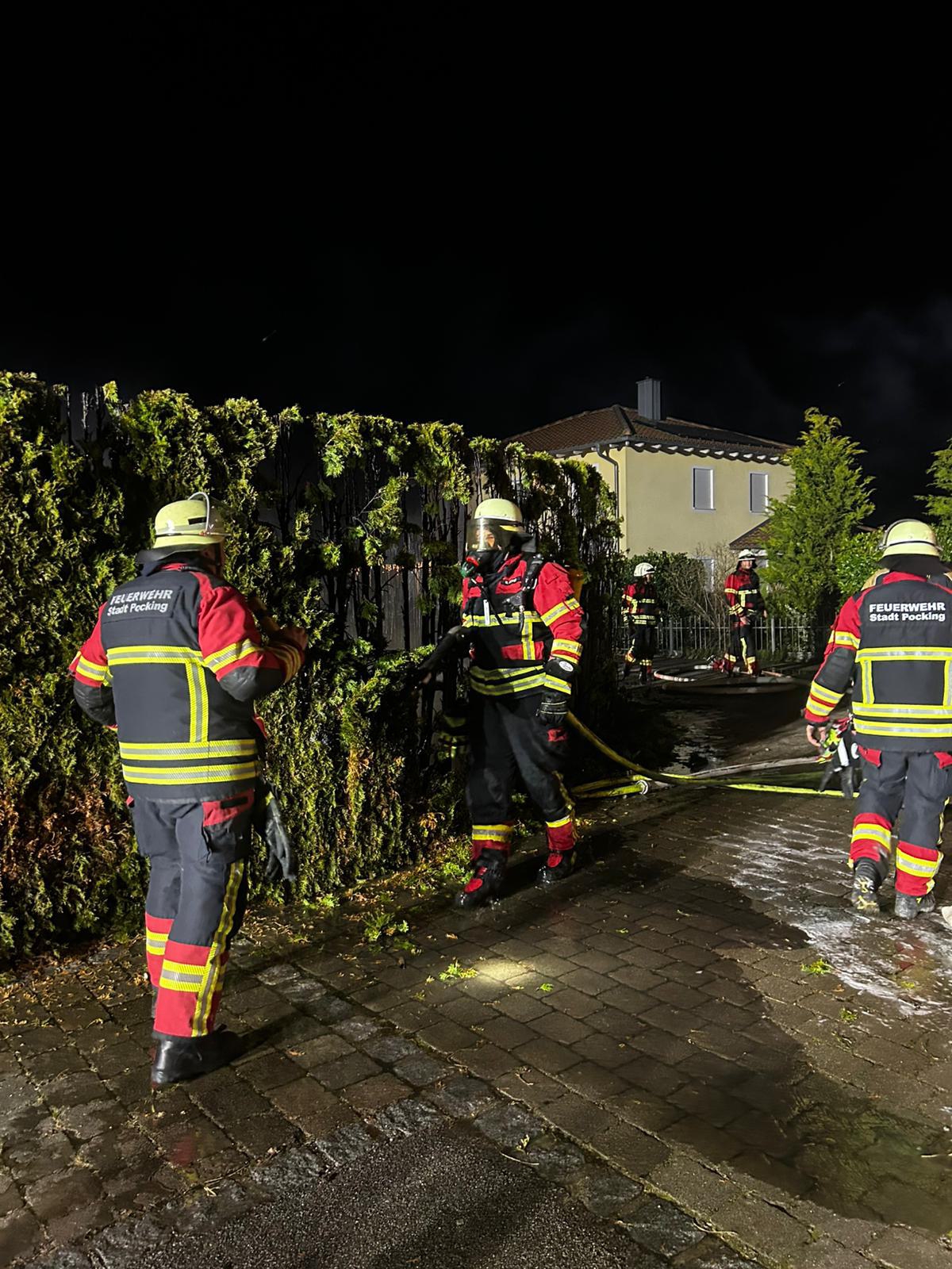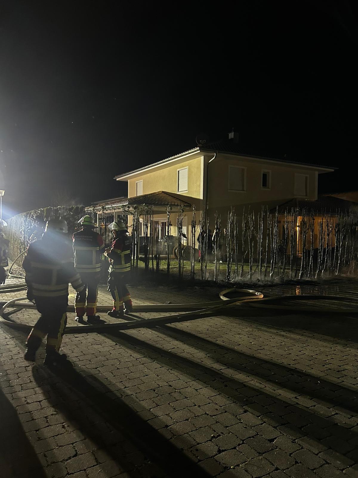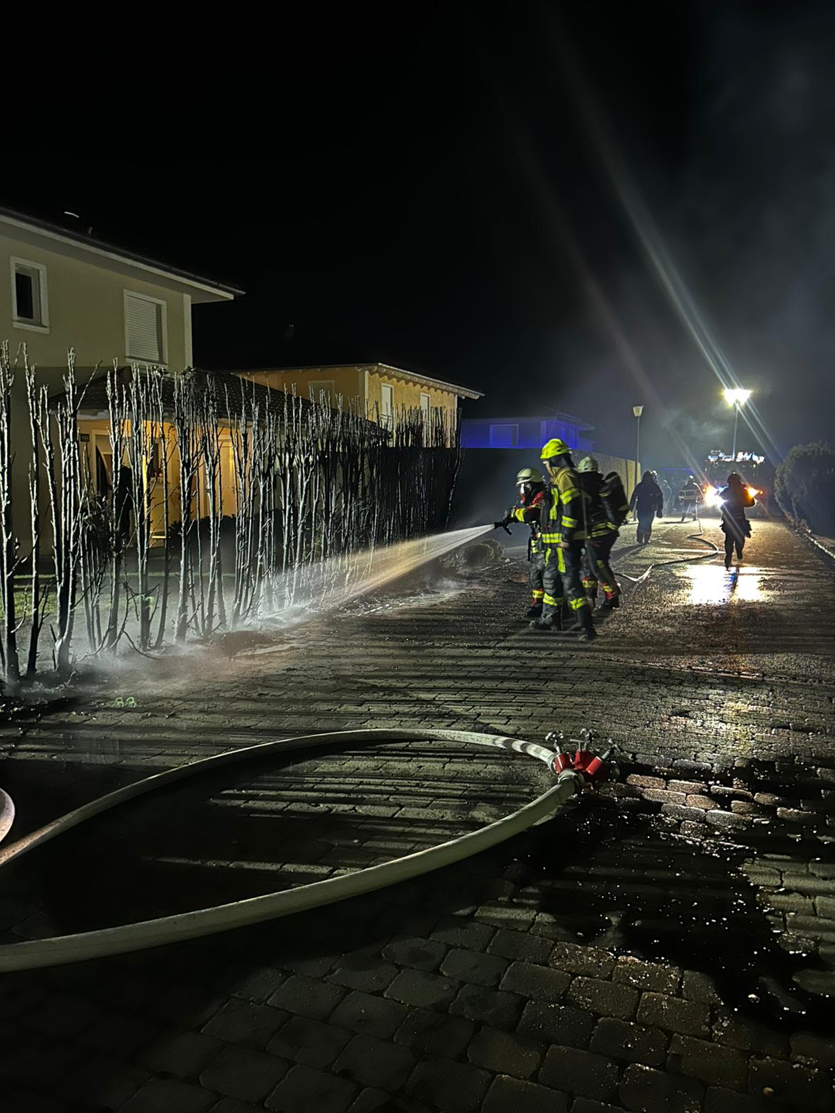 B3/ Brand Hecke am Gebäude.
