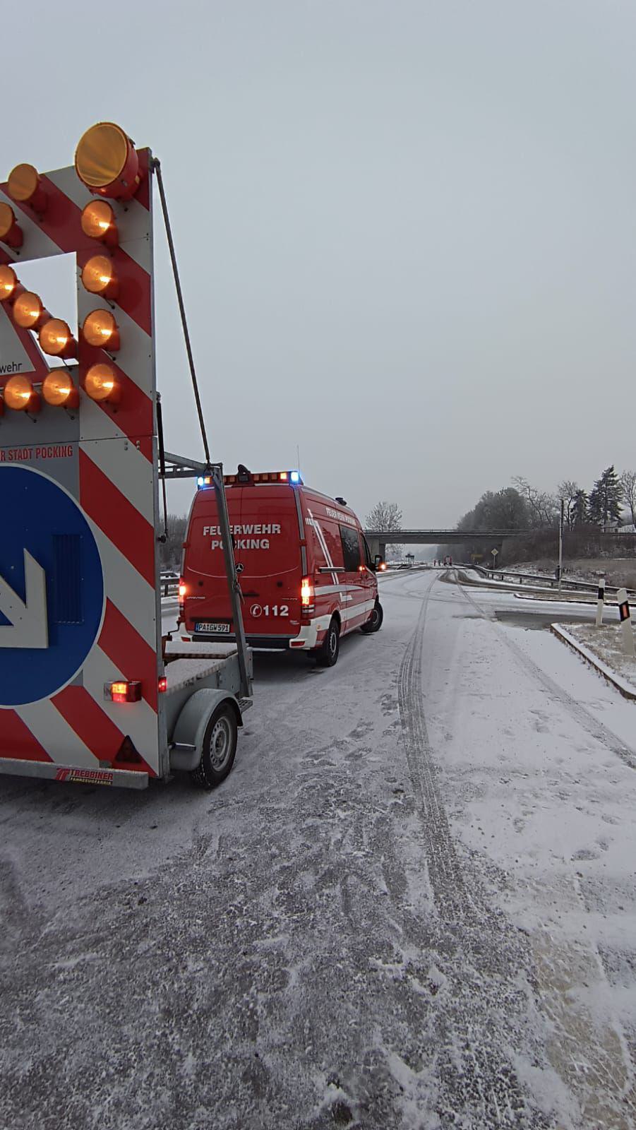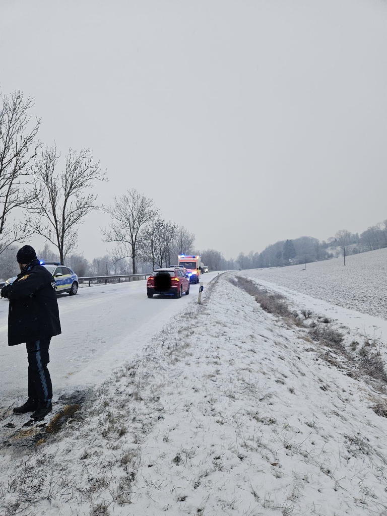Gegen 08:00 Uhr wurden wir auf die B388 zu einem Verkehrsunfall mit Pkw und eingeklemmter Person gerufen.