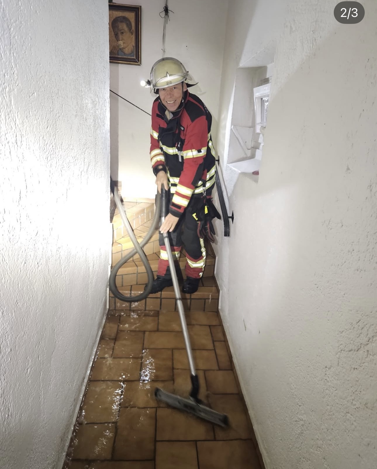 5 Kellerräume standen durch einen Rohrbruch unter Wasser. Mit 2 Wassersaugern und einer Tauchpumpe wurde das Wasser aus dem Keller gepumpt.