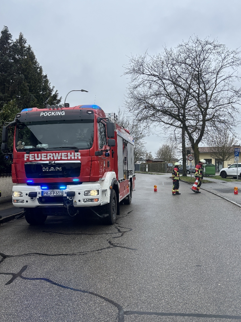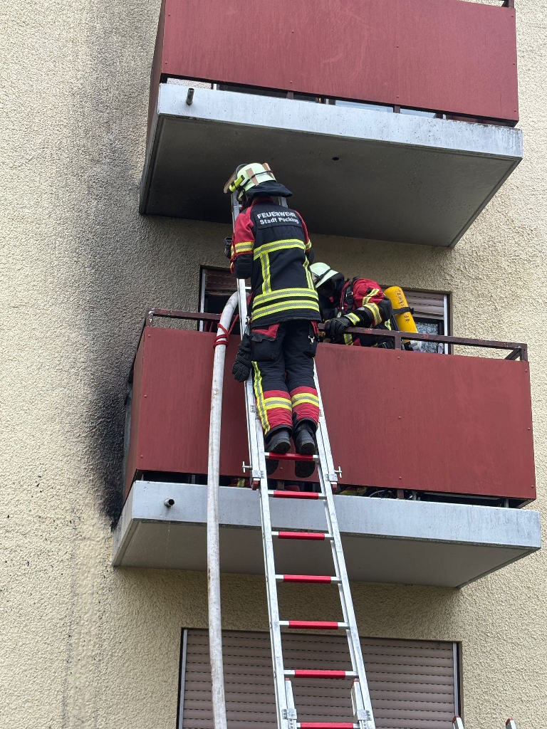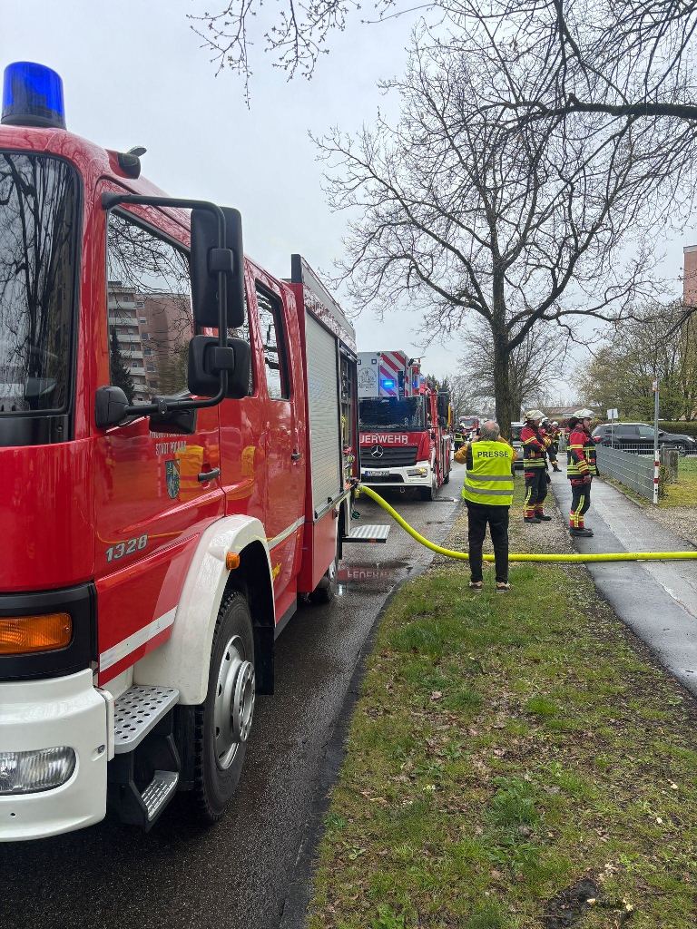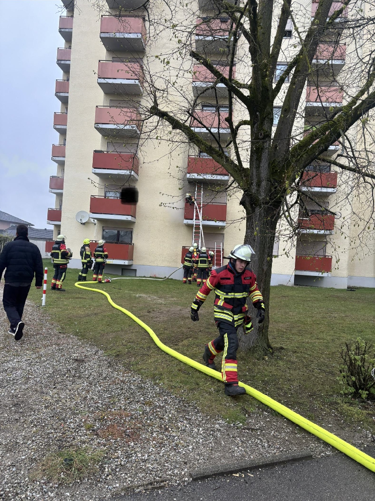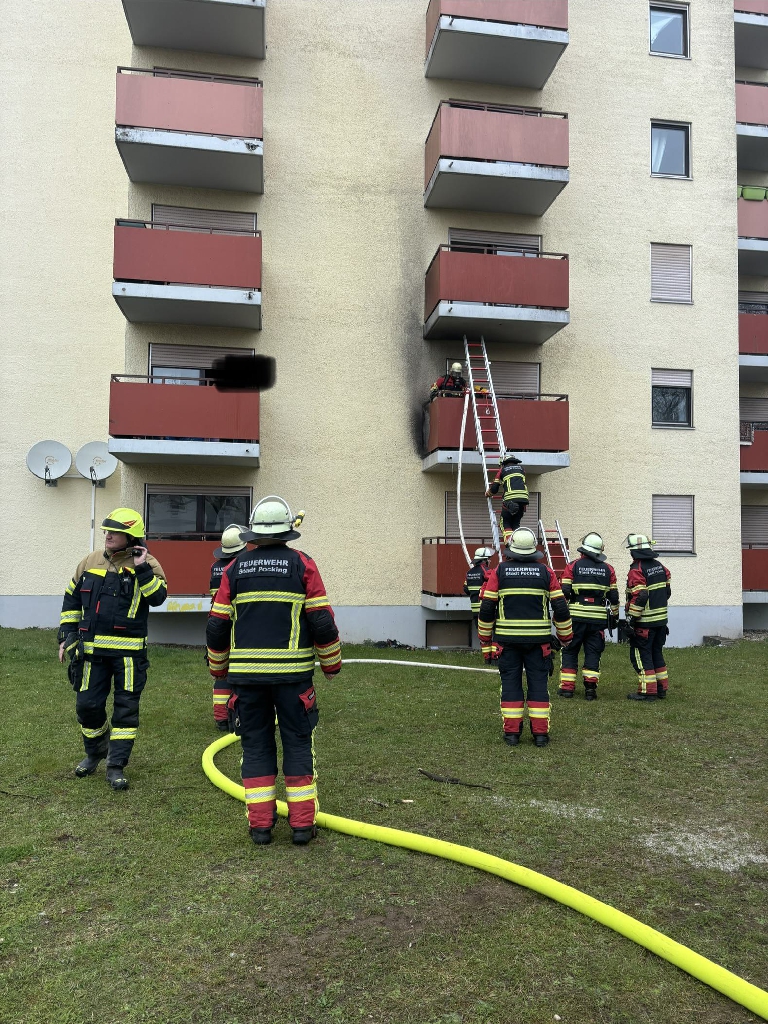 Alarmiert zu einem Brand eines Hochhauses in die Bajuwarenstrasse. Beim Eintreffen der ersten Kräfte stand eine Balkonseite in Vollbrand. Feuer und Rauch zogen auf den darüberliegenden Balkon sowie Rauch leicht in die Wohnung. Über Leitern drang ein ATS-Trupp auf den Balkon vor und löschte das Feuer. Mit Hilfe eines Überdrucklüfters wurde die Wohnung entraucht und nach Übergabe an die Polizei konnten wir wieder einrücken.